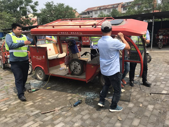 嚴(yán)管形成了高壓態(tài)勢,厚愛更維護了鄲城縣文明執(zhí)法的良好形象。該縣規(guī)定,對家用電動三輪車、電動四輪車進入縣城禁行區(qū)域的,文明執(zhí)法,不予處罰,以暫扣警示、宣傳勸導(dǎo)為主。對于從事非法營運的電動兩輪車、電動三輪車、電動四輪車車主不予經(jīng)濟處罰,車棚自愿切割后放行。對于老弱病殘等特殊情況及時匯報領(lǐng)導(dǎo),酌情處理。