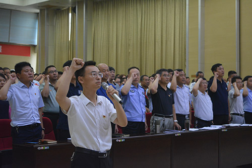上午9點,會議在國歌聲中開幕。會上,開發(fā)區(qū)黨委對先進基層黨組織、優(yōu)秀基層黨支部書記、優(yōu)秀共產(chǎn)黨員、優(yōu)秀黨務(wù)工作者和學(xué)習(xí)標(biāo)兵進行表彰。全體與會人員面向黨旗,重溫入黨誓詞。黨委書記王文峰為大家上黨課。
