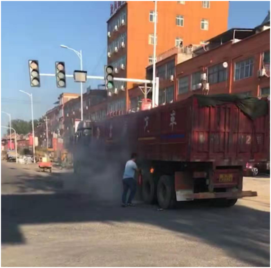 7月6日早上6時40分,一輛貨車由東至西行駛到西扶超限檢測站負(fù)責(zé)的環(huán)保檢測卡點(diǎn)時輪胎突然起火,執(zhí)法人員發(fā)現(xiàn)后,立即用車載喇叭喊話提醒司機(jī)停車,此時車輛正好停在值勤卡點(diǎn)紅綠燈處,一旦火勢不受控制,將給司機(jī)及周邊群眾帶來不可預(yù)測的危險與損失,帶班站長李建東一邊組織人員進(jìn)行救火,一邊通知站長劉洪亮。得到警情后,劉洪亮站長立即組織增援,同時指令張光輝、劉伯倫駕駛站內(nèi)高壓撒水車迅速趕往事故現(xiàn)場,經(jīng)過共同努力,著火處被撲滅,避免了一場火災(zāi)事故的發(fā)生。事后,貨車司機(jī)十分感動,拉著執(zhí)法人員的手深表謝意。
