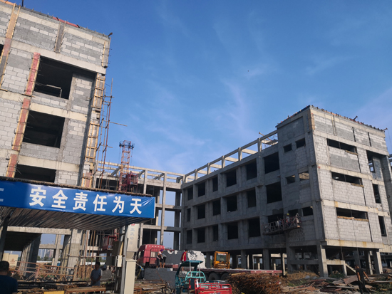 當(dāng)日上午,記者在施工現(xiàn)場看到,雖然天氣炎熱,但是每項工程都進展有序,部分已經(jīng)封頂?shù)臉欠空谶M行后續(xù)施工,未封頂?shù)臉欠恳舱诰o張施工中,整個施工現(xiàn)場電鉆聲、切割聲此起彼伏,一派熱烈的施工景象。