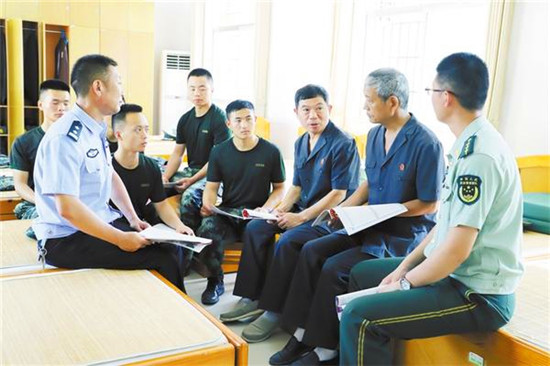 7月26日上午,太康縣人民法院的法官們來到縣武警中隊(duì),為武警官兵提供法律咨詢和服務(wù)活動,解決他們在日常工作、生活中遇到的法律問題,并向他們贈送《軍人維權(quán)指南》《法律小常識》等有關(guān)法律書籍及慰問品,受到了熱烈歡迎。圖為該院法官向武警官兵講解法律常識。