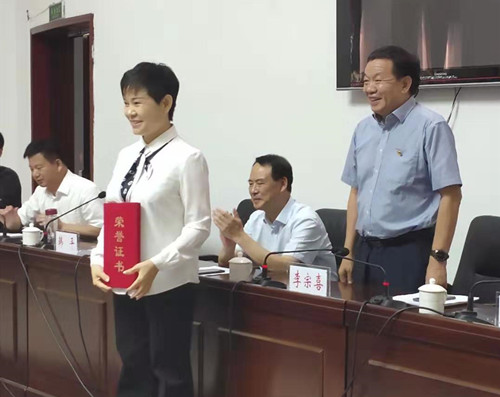 會上,與會領(lǐng)導(dǎo)向韓平女士頒發(fā)榮譽(yù)證書和榮譽(yù)獎(jiǎng)牌。受助學(xué)生代表作了發(fā)言。