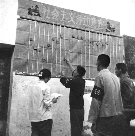 廣播喇叭一直轉(zhuǎn)播著中央人民廣播電臺的節(jié)目,哀樂一遍遍響起,回蕩在大街小巷、城鎮(zhèn)鄉(xiāng)村,大家不約而同地佩戴黑紗,自發(fā)做白花、扎花圈、寫挽聯(lián),商店里的白紙和黑布都賣缺了。機關(guān)單位的同志在自己布置起來的靈堂里悼念毛主席,學(xué)生每天上課之前都向毛主席默哀,工廠里掛起了“繼承毛主席遺志,抓革命、促生產(chǎn)”的橫幅,農(nóng)民佩戴著黑紗在田野里勞動。