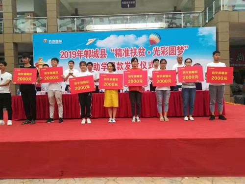 本次“精準(zhǔn)扶貧·光彩圓夢(mèng)”由縣萬(wàn)洋集團(tuán)慷慨解囊、傾情相助,共捐資20萬(wàn)元,對(duì)100名品學(xué)兼優(yōu)的貧困學(xué)子給予資助,為鄲城的教育事業(yè)增光添彩。