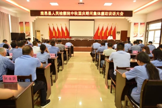 中秋節(jié)、國慶節(jié)即將來臨,為加強節(jié)日期間黨風(fēng)廉政建設(shè),以實際行動展現(xiàn)檢察隊伍遵規(guī)守紀的過硬作風(fēng),9月 9日,鹿邑縣人民檢察院召開中秋、國慶“雙節(jié)”期間集體廉政談話大會。