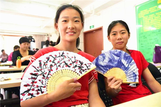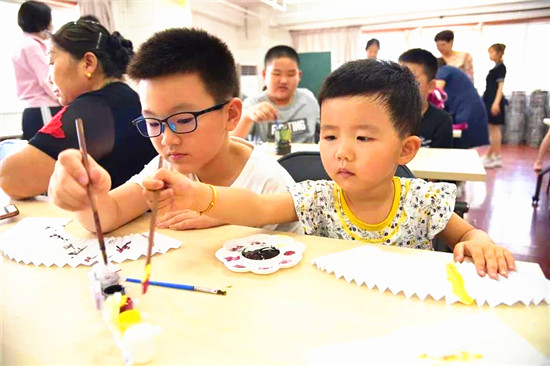水印畫、畫扇面、穿扇衣……7月23日,北京市懷柔區(qū)泉河街道新賢家園社區(qū)開展“DIY手工水印折扇,喜迎祖國70華誕”主題活動,40余名青少年共同學(xué)習(xí)體驗(yàn)水印折扇的文化和樂趣。