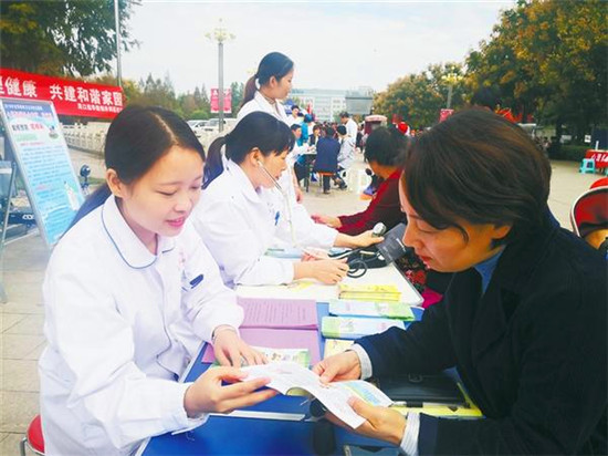 10月10日是世界精神衛(wèi)生日,當日上午9時至11時,周口市衛(wèi)健委組織我市28家醫(yī)院在川匯區(qū)文化廣場舉辦主題為“心理健康社會和諧,我行動”的義診活動?;顒蝇F場,100多名醫(yī)務人員向群眾提供免費疾病咨詢,宣傳普及精神衛(wèi)生健康醫(yī)學知識,紛紛開出身心健康處方,受到群眾的熱烈歡迎。