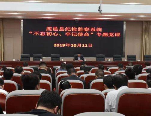 10月11日,鹿邑縣委常委、紀委書記、監(jiān)委主任韓林利用縣紀委監(jiān)委“不忘初心、牢記使命”主題教育集中學習時間以《砥礪初心本色 ,強化使命擔當,奮力推進新時代紀檢監(jiān)察工作高質(zhì)量發(fā)展》為題為全縣紀檢監(jiān)察系統(tǒng)全體干部上了一堂生動的專題黨課。