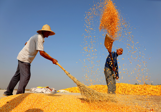 此時,正值西華縣秋收時節(jié),玉米、花生、大豆、谷子、辣椒、柿子、大棗、甘蔗等農(nóng)作物應季而熟。滿眼的金色、紅色與田間地頭緊張運作的農(nóng)業(yè)機械和農(nóng)民忙碌的身影構成一幅美不勝收的秋收畫卷。