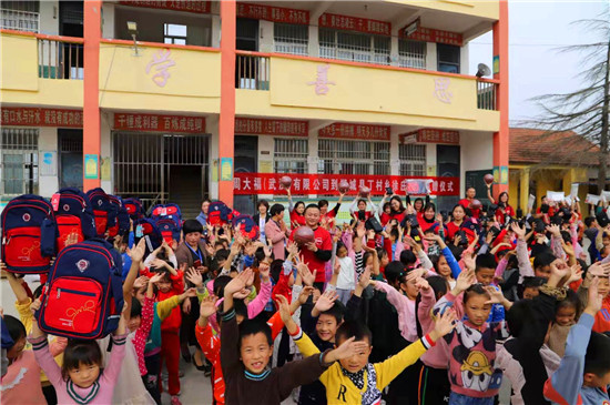 10月24日,周大福河南區(qū)域負(fù)責(zé)人岳磊一行15人,帶著書包、文具、足球、藍(lán)球等學(xué)習(xí)用品,來(lái)到鄲城縣丁村鄉(xiāng)徐莊小學(xué),為200余名學(xué)生送來(lái)了愛心大禮包。并為兩戶貧困戶送去了米面油等慰問品。