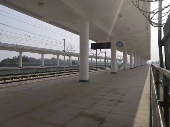 經(jīng)過(guò)檢票機(jī)安檢通道,乘電梯或步梯通往站臺(tái)。該站站場(chǎng)設(shè)2臺(tái)4條(含正線2條),設(shè)基本站臺(tái)、側(cè)式站臺(tái)各1座,站臺(tái)最高聚集人數(shù)為600人。