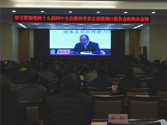扶溝縣組織收看學(xué)習(xí)貫徹黨的十九屆四中全會(huì)精神省委宣講團(tuán)報(bào)告會(huì)