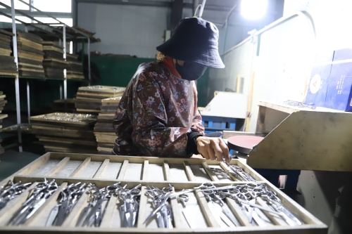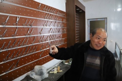 “我也是從小就外出,一直在江蘇蘇州發(fā)展,做刀剪十幾年了。現(xiàn)在家鄉(xiāng)環(huán)境好,回來發(fā)展比在南方還有前途?!苯衲?9歲的陳政治老家是虎崗鄉(xiāng)陳莊村。被虎崗鄉(xiāng)黨委政府的誠意所感動,他很樂意回鄉(xiāng)發(fā)展,因為房租價格低、務(wù)工人員穩(wěn)定,營商環(huán)境又好,所以他帶著自己的外甥楊亞杰和技術(shù)團隊回到老家鄲城,還能助力家鄉(xiāng)經(jīng)濟發(fā)展。陳政治說,他的廠子所生產(chǎn)的東升、jack、亞寶等品牌刀剪全部銷往全國高檔理發(fā)店,產(chǎn)品供不應(yīng)求。像這樣的高檔刀剪生產(chǎn)廠家,在中原地帶極少。剛投產(chǎn)幾個月,他已經(jīng)接到了來自韓國、日本等地的訂單。