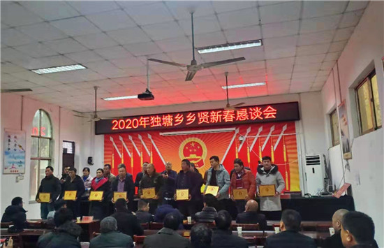 最后,鄉(xiāng)黨委書記高毓明向與會(huì)鄉(xiāng)賢代表送上了新春祝福,并介紹了獨(dú)塘鄉(xiāng)2020年發(fā)展規(guī)劃和未來工作思路,希望有資金、懂技術(shù)的成功人士回鄉(xiāng)發(fā)展創(chuàng)業(yè)。高毓明書記表示,獨(dú)塘鄉(xiāng)的每一分進(jìn)步、每一份成績的取得,都離不開鄉(xiāng)賢們的鼎力支持,希望各位鄉(xiāng)賢有空?;丶铱纯?,積極為家鄉(xiāng)發(fā)展獻(xiàn)言獻(xiàn)策,為建設(shè)美麗和諧新獨(dú)塘奉獻(xiàn)自己的一份力量。