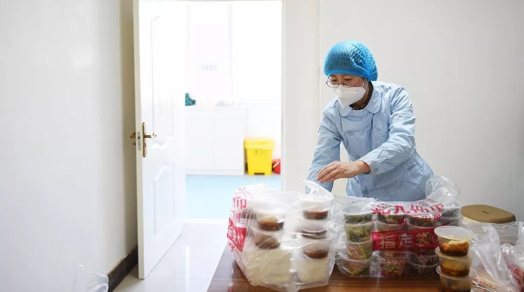 又到了打飯的時間,鄲城縣人民醫(yī)院新冠肺炎定點治療隔離病區(qū)護士長莊坤掰著手指一個一個向餐廳介紹病人的情況,用“了如指掌”來形容最恰當不過。一邊說話,她一邊熟練地將幾筐飯菜分類打包,每一份都用食品袋包好,哪是確診病人的,哪是留觀病人的,每一份上面都寫上名字,再由護士分別送去。