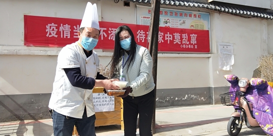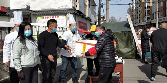 2月22日中午,川匯區(qū)小橋辦事處高莊社區(qū)疫情防控值勤卡點迎來盛世宴賓樓的大廚們,他們帶著熱騰騰的午餐前來慰問值勤人員,為抗疫一線工作者改善伙食。盛世宴賓樓負責(zé)人智廣旭告訴記者,社區(qū)疫情防控工作緊張忙碌,他好幾次看到值勤卡點的工作人員用方便面對付一日三餐,心里很感動也很難受,所以飯店決定在疫情結(jié)束之前連續(xù)贈送午餐晚餐,“讓社區(qū)卡點的同志吃好點”。