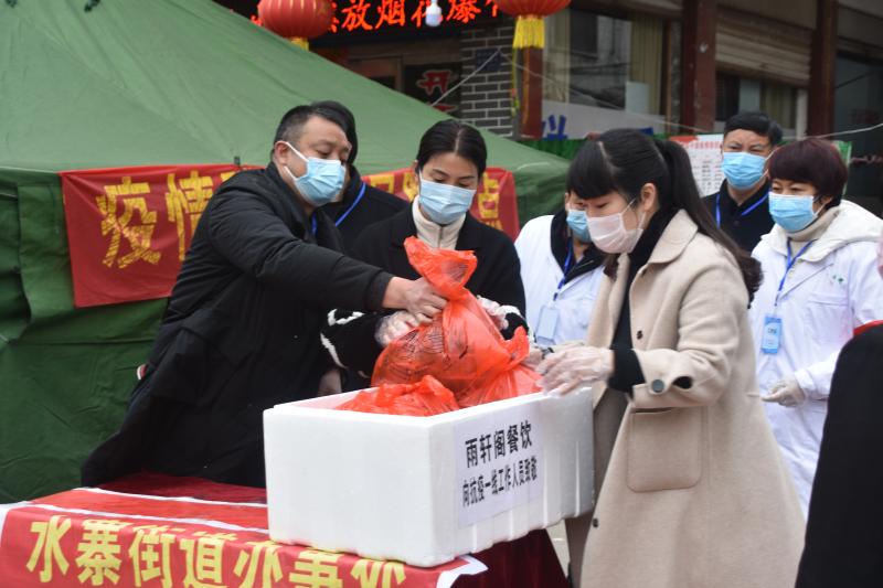 一位正在吃飯的干部透露,值班的長安社區(qū)支部委員馮松齡每天堅守崗位,接觸的人比較多,每天進(jìn)行消毒,羽絨服已經(jīng)一個多月沒有換洗了,你說辛苦不辛苦?疫情無情,人間有愛,為了讓一線防控人員少受一些風(fēng)餐露宿的困苦,雨軒閣飯店用“小我”奉獻(xiàn)大愛;為附近一線防控人員送來了120份盒飯,讓防控人員真切感受這些飯菜所承載的濃烈的愛與熱情。