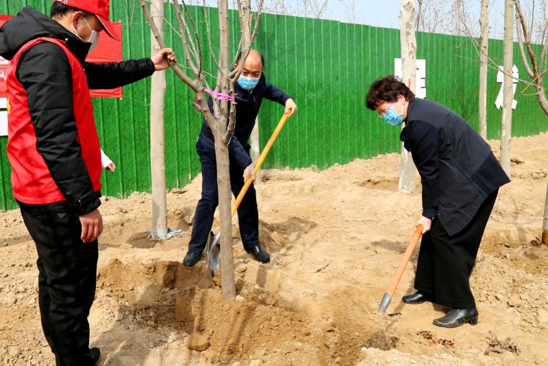 植樹現(xiàn)場到處是忙著植樹的人群,大家手扶樹苗,揮動鐵锨,三五成隊,勞動場面繁忙而有序??h領(lǐng)導(dǎo)與廣大干部職工分組協(xié)作,熱情高漲、干勁十足,合力種下一棵棵樹苗。經(jīng)過一番熱火朝天的忙碌,一排排新栽的苗木迎風(fēng)挺立,為初春的扶溝增添了絲絲綠意。