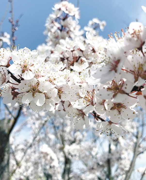 “一葉春風(fēng)吹動蕾,紅葉李花妍漫天。”紅葉李又名紫葉李,屬薔薇科。走近觀看,細細密密的粉白色繁花開滿枝頭,在紫色葉子的襯托下,顯得別致、靚麗。遠遠望去,像是爛漫層疊的櫻花,又宛如飄落大地的云霞,為春天平添幾分嫵媚、幾分浪漫。