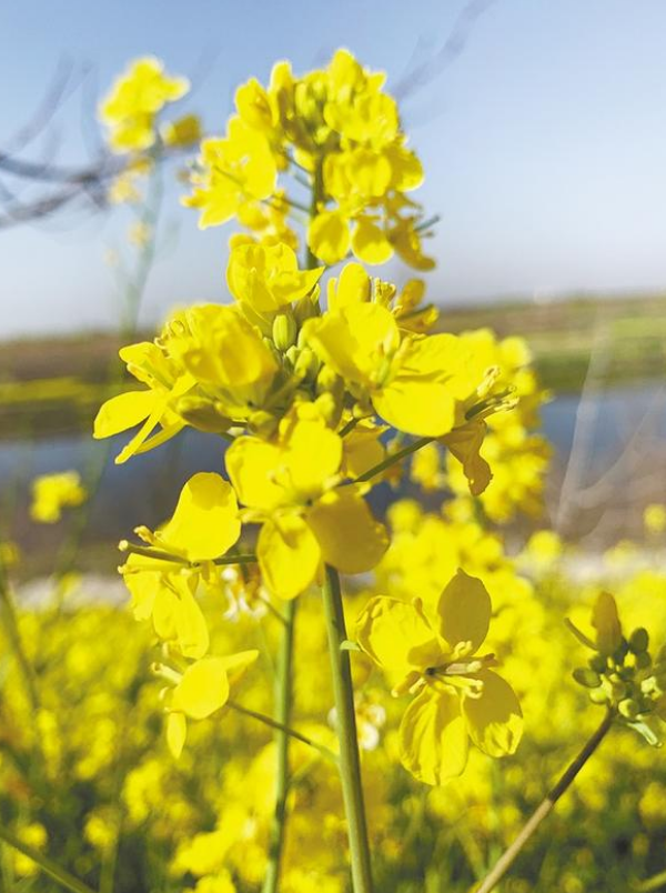 進入油菜開花時節(jié),田野間一片金黃。油菜花競相怒放,千姿百態(tài),花團錦簇,放眼望去,花海十分壯觀,大地都像披著一塊金黃的地毯。花粉中含有豐富的花蜜,引來彩蝶與蜜蜂飛舞,美麗風(fēng)景讓人流連。