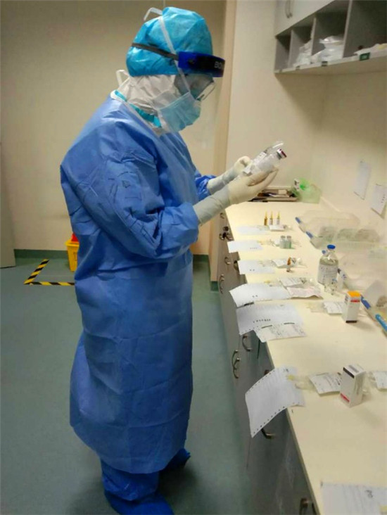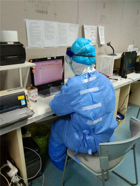 盡管工作經(jīng)驗(yàn)很豐富,但3月2日12時(shí),穿著厚重防護(hù)服、戴著護(hù)目鏡、佩戴三層橡膠手套的孫慧慧第一次進(jìn)入護(hù)士站后,面對(duì)陌生的工作流程,心里還是有些發(fā)慌。