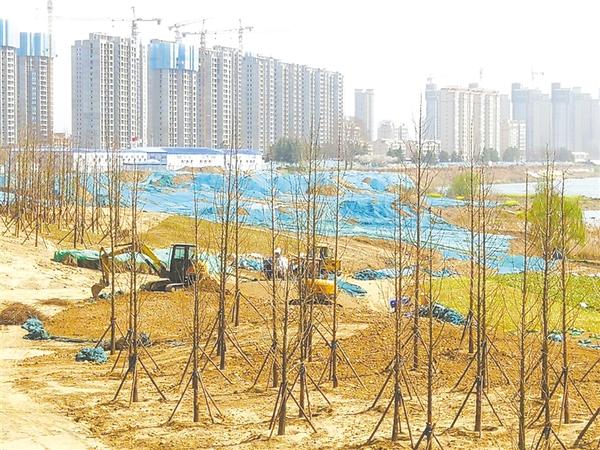 3月20日,沙潁河周口大道至八一大道北岸生態(tài)改造工程正在緊張施工。該工程全長(zhǎng)約4.6公里,整體設(shè)計(jì)圍繞沙潁河主題印象展開,濱水景觀將展示豐富多彩的周口文化底蘊(yùn)。目前,周口大道至大慶路段的景觀綠化和市政道路正在加快施工。記者 孫安平 攝