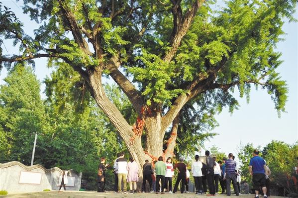 許村白果樹 位于商水縣鄧城鎮(zhèn)許村西,為西漢時(shí)期種植。1983年被定為縣級(jí)重點(diǎn)文物保護(hù)單位。 白果樹學(xué)名銀杏,以壽命長(zhǎng)而著稱。許村白果樹高20米左右,胸圍7.5米,覆蓋地面1畝許。三國(guó)時(shí)期修灌溉渠道,堆土封在樹身上,地平面使樹干留下細(xì)腰,后雨水沖刷使地面降低,露出樹根,外皮綻破,被后人傳說(shuō)為漢光武帝劉秀在此歇息時(shí)拴馬所勒。 歷經(jīng)千年風(fēng)霜,白果樹仍枝葉繁茂,蒼勁挺拔,成為遠(yuǎn)近聞名的壽星古樹和人文景觀。