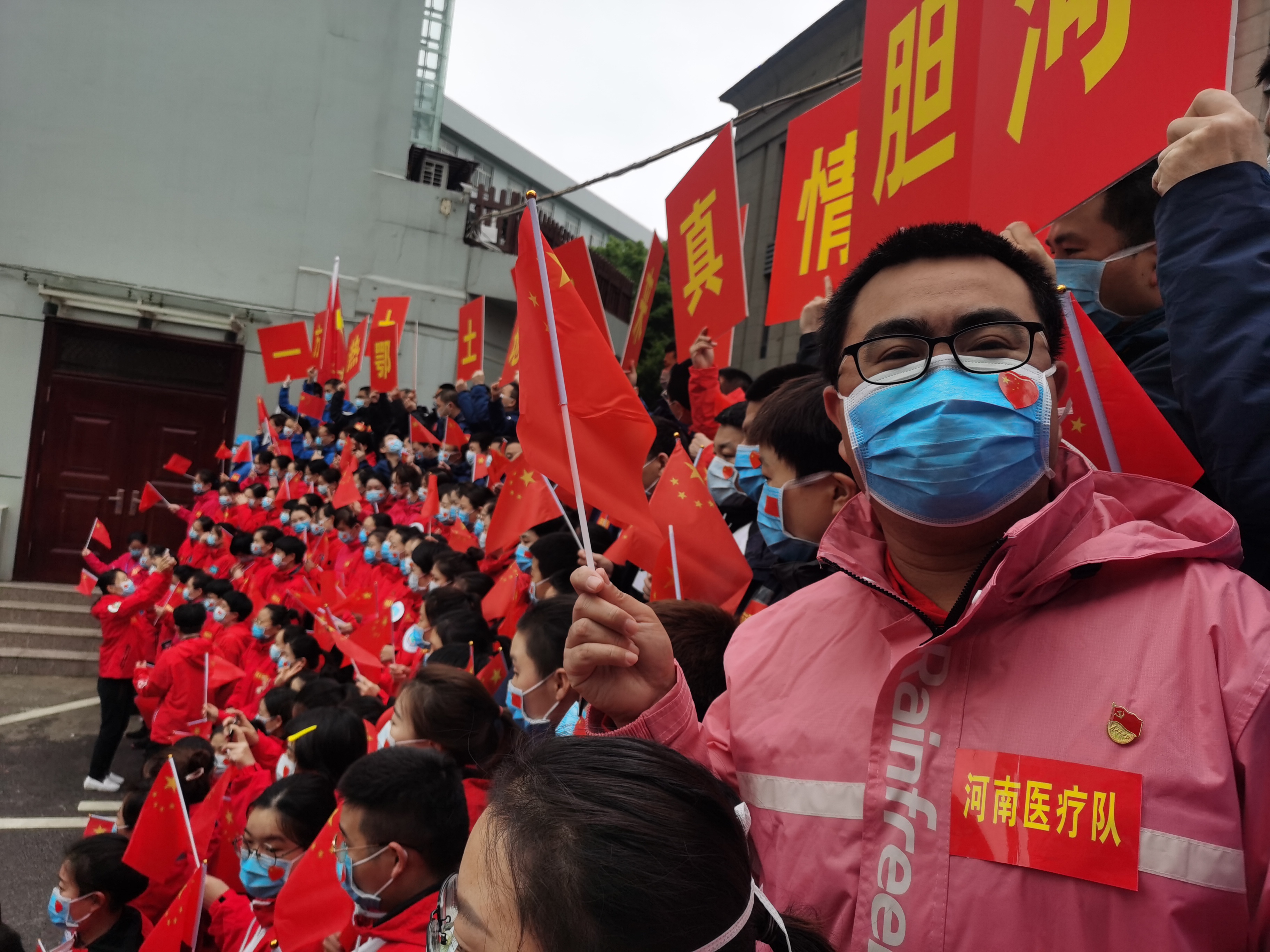 3月30日上午,在完成各自使命之后,按照河南省援鄂醫(yī)療隊(duì)統(tǒng)一安排起程凱旋。湖北街頭萬(wàn)人空巷送英雄,街頭車輛長(zhǎng)鳴笛,沿街循環(huán)播放紅歌《歌唱祖國(guó)》,勝利的歌聲激蕩勝利的心情。