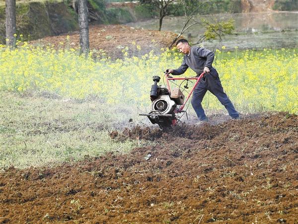 圖三 昨日,沈丘縣卞路口鄉(xiāng)一農(nóng)民正在用小型農(nóng)機犁地。連日來,氣溫不斷回升,當?shù)剞r(nóng)民搶抓有利時機,進行犁地、澆水、除草等春季管理,田間地頭一派忙碌景象。 黃海濤 攝