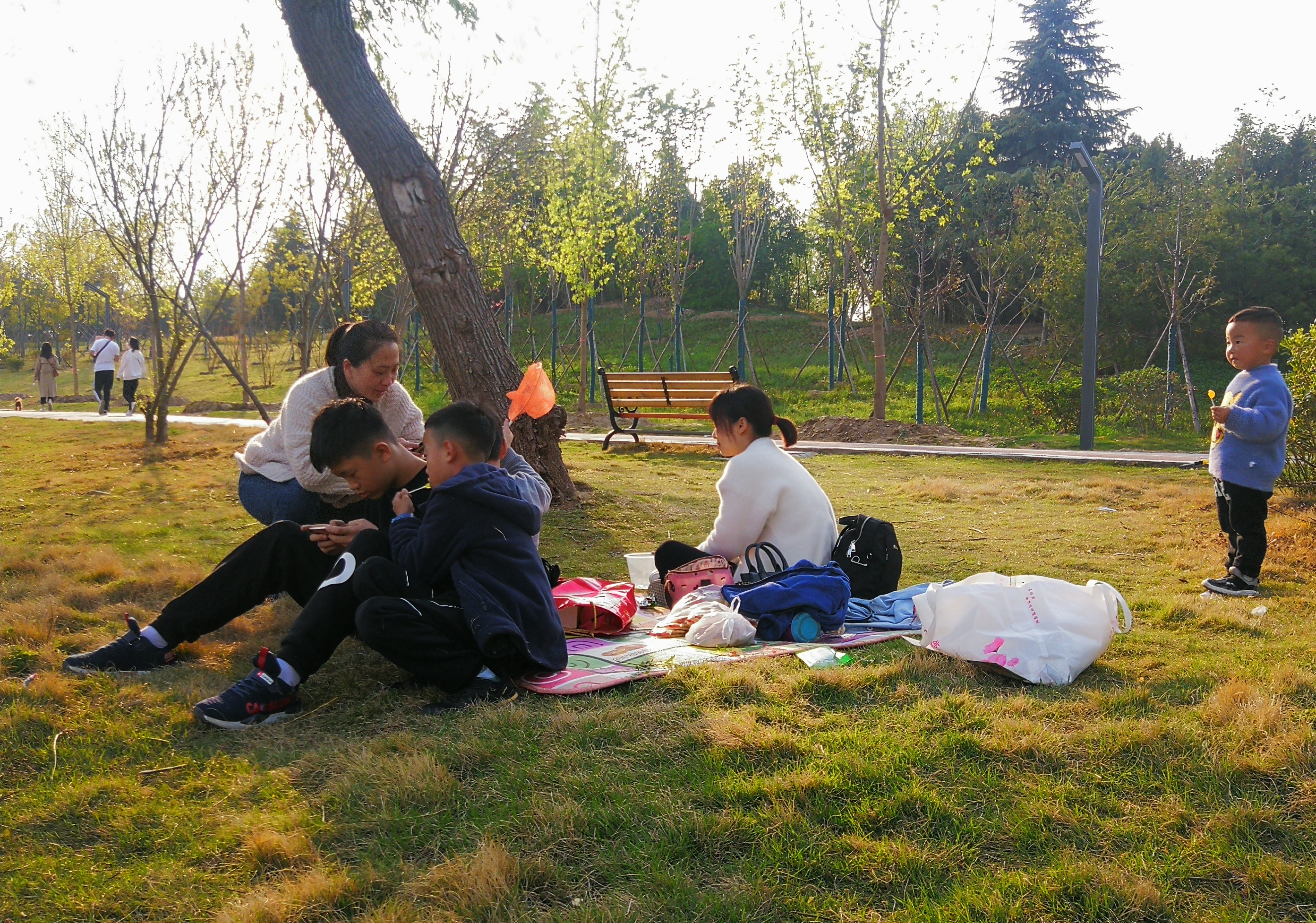 4月13日,周口植物園內(nèi)游人如織,市民或三三兩兩健身散步,或聚在一起玩耍聊天,盡情享受綠樹成蔭、鳥語花香的舒適環(huán)境。