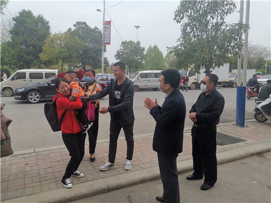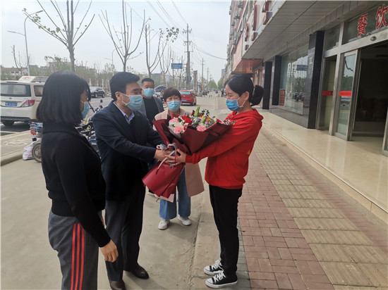 鄲城縣婦幼保健院院長亢國良帶領(lǐng)副院長羅素霞、護(hù)理部主任王翠蘭,到隔離點迎接該院援鄂英雄丁錕回家,為英雄送去鮮花,并全程護(hù)送丁錕安全返回家中。