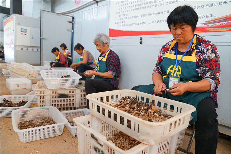 在大許寨鎮(zhèn)羅古洞村華瑞農(nóng)牧食用菌基地的包裝車(chē)間內(nèi),60多歲的村民王梅芝在和其他工人們一起包裝羊肚菌。她說(shuō),自己每月有1000多元的收入、“不用外出,在家門(mén)口掙錢(qián),還能照顧孫子。”王梅芝說(shuō)。
