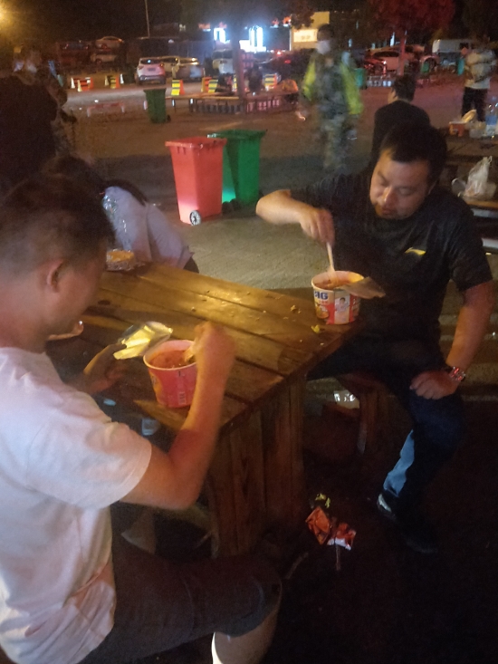 當(dāng)晚,隊員們帶著嫌疑人歸來,在服務(wù)區(qū)內(nèi),群里傳來一張大家吃方便面的照片,靳偉成還發(fā)來一句:“帶了這么多衣服,忙得都沒有時間換一件?!?/p>