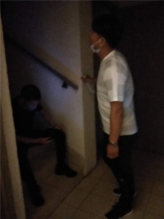 按照事先摸排到的信息,抓捕組民警終于在南京市江寧區(qū)一小區(qū)內(nèi)找到了嫌疑人的居住地,而嫌疑人卻不在屋內(nèi)。于是,民警們便在嫌疑人家門“守株待兔”,群里發(fā)來幾張民警坐在樓梯口蹲守照片。等待是漫長的,一直等到晚上10時許,嫌疑人始終沒有出現(xiàn)。民警通過嫌疑人門把手上幾天前的一張廣告單頁判斷,嫌疑人很有可能已經(jīng)不在此居住,便撤離了蹲守點(diǎn)。
