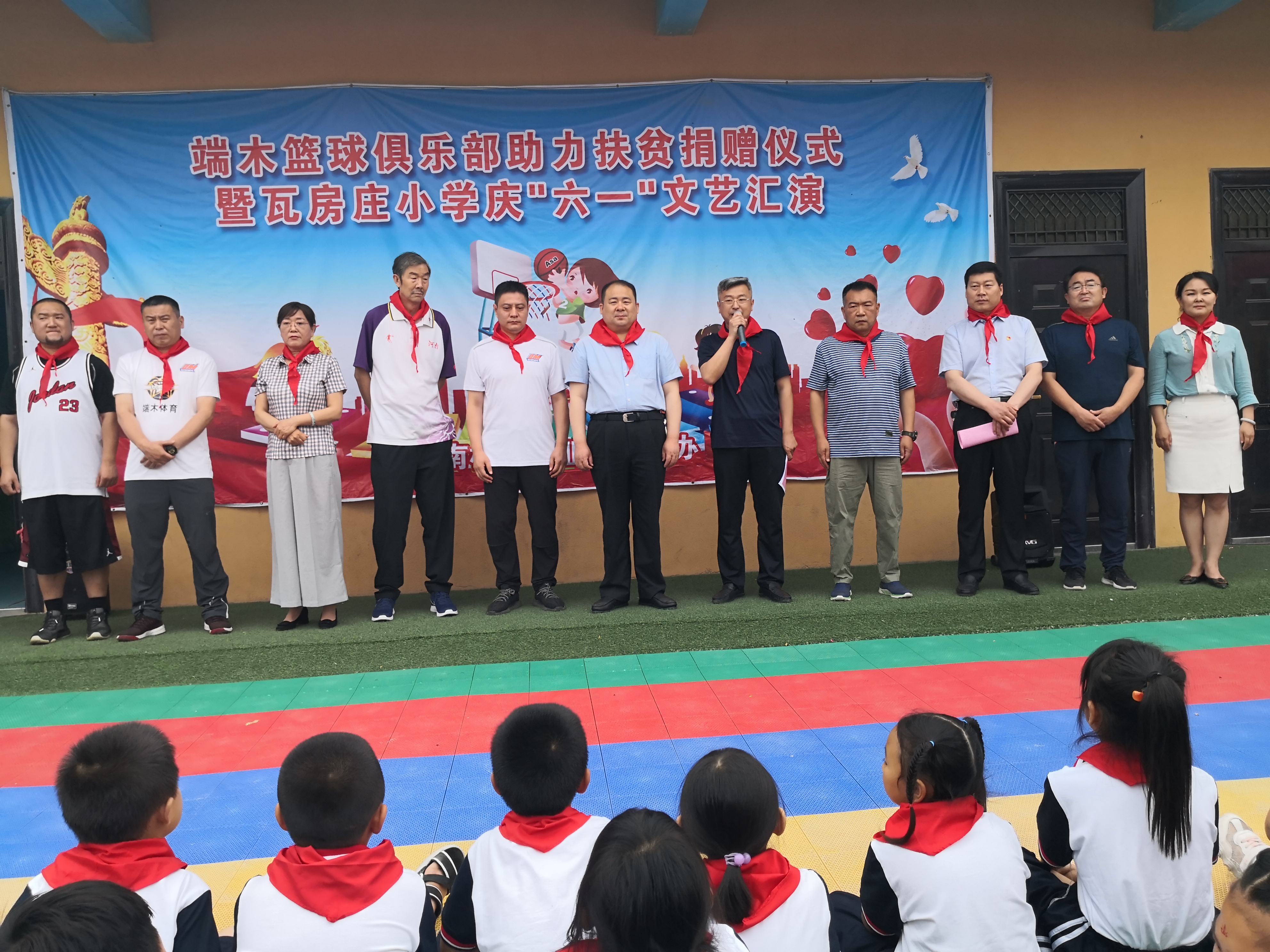 河南省端木籃球俱樂部是一個(gè)青少年籃球培訓(xùn)機(jī)構(gòu),長期致力于青少年籃球運(yùn)動(dòng)普及和人才培養(yǎng),依托專業(yè)的高水平教練團(tuán)隊(duì)和完善的訓(xùn)練場(chǎng)館設(shè)施,近年來為國家培養(yǎng)輸送了大批的籃球?qū)I(yè)人才,他們有的進(jìn)入了專業(yè)隊(duì),有的進(jìn)入了985、211等一流名校深造。在本次活動(dòng)中,端木籃球俱樂部向瓦房莊小學(xué)捐贈(zèng)了籃球、跳繩、運(yùn)動(dòng)服裝等一批學(xué)生體育用品,進(jìn)行了精彩的花式籃球表演,并安排專業(yè)籃球教練員帶瓦房莊小學(xué)的孩子們上了一堂籃球訓(xùn)練課,瓦房莊小學(xué)的師生進(jìn)行了慶“六一”文藝匯報(bào)演出。參加活動(dòng)的村民和小學(xué)生歡歌笑語,度過了一個(gè)愉快而難忘的上午。