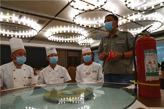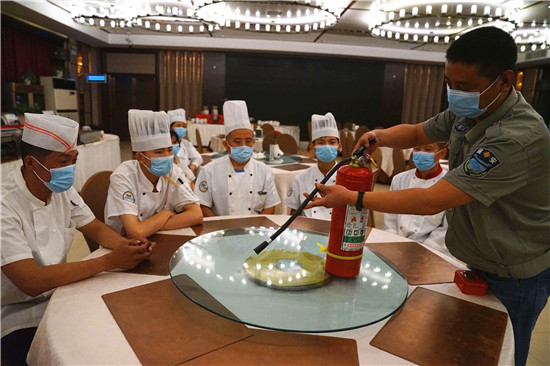 夏季來臨,消防安全成為大家關(guān)注的焦點,為了消除隱患,防止安全事故發(fā)生,6月3日,周口飯店精心組織管理人員和員工開展消防應(yīng)急演練,提升消防應(yīng)急處置能力,預(yù)防各種事故發(fā)生。當天,來自該飯店餐飲部及客房部40余名工作人員參加了演練。(記者 金月全 攝)