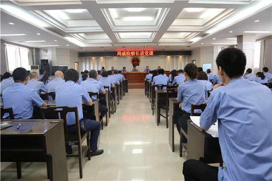 近日,項(xiàng)城市人民檢察院黨組書記、檢察長周威為全院干警講“強(qiáng)化四個(gè)意識,推進(jìn)機(jī)關(guān)黨建上水平”專題黨課。