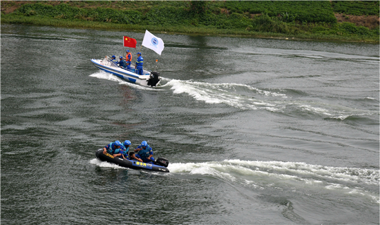 上午9時(shí),隨著田林“開(kāi)始演練”命令的下達(dá),60人組成的搶險(xiǎn)突擊隊(duì),緊張有序開(kāi)展了五個(gè)科目的演練。突擊隊(duì)員通過(guò)巡堤查險(xiǎn),觀察堤坡及堤腳附近有無(wú)滲水、管涌、裂縫、滑坡、漏洞等險(xiǎn)情。發(fā)現(xiàn)險(xiǎn)情后,迅速采取導(dǎo)滲、截滲等搶險(xiǎn)措施,確保險(xiǎn)情得到及時(shí)、正確、有效的處理或控制。發(fā)現(xiàn)落水人員,四艘沖鋒舟分工明確,立即前往落水地點(diǎn)進(jìn)行救助。