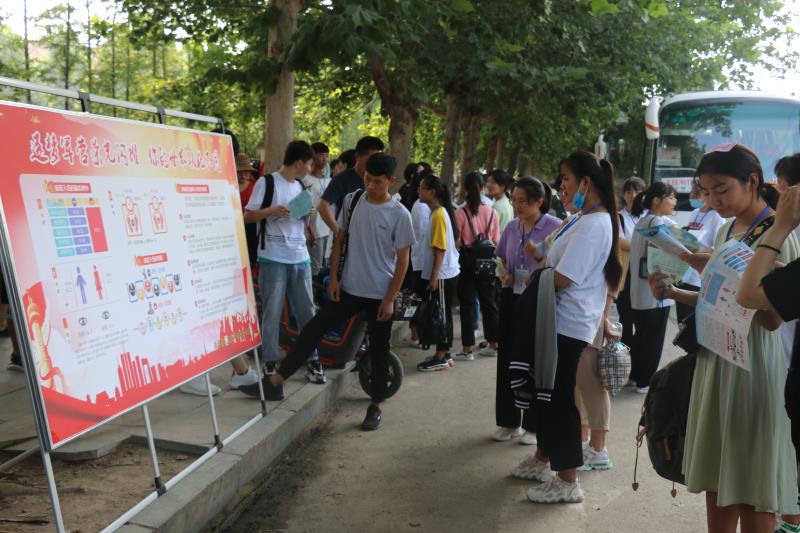 在該縣各標(biāo)準(zhǔn)化高考考點(diǎn)征兵宣傳現(xiàn)場(chǎng),人頭攢動(dòng)、熱鬧非凡。“好男兒,來當(dāng)兵”大紅條幅和“把忠心獻(xiàn)給祖國(guó),把青春獻(xiàn)給軍營(yíng)”“參軍報(bào)國(guó)盡義務(wù),熱血青年競(jìng)風(fēng)采”的大型宣傳牌格外引人注目,內(nèi)容豐富的征兵宣傳展板一字排開,《征兵宣傳手冊(cè)》《大學(xué)新生應(yīng)征入伍宣傳單》《征兵政策宣傳解讀手冊(cè)》等征兵宣傳資料擺放在咨詢臺(tái)上一目了然,吸引了眾多的考生和家長(zhǎng)駐足觀看,圍著咨詢臺(tái)詢問有關(guān)征兵事宜。