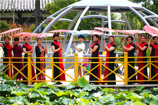 周口森林公園經(jīng)過近年的建設(shè)已經(jīng)成為市區(qū)休閑的一處好去處,風景優(yōu)美,園林幽深,目前,盡管森林公園附近道路施工,進出還不方便,但是仍吸引著很多居民前去休閑游玩,愛美的大媽們更是在這里秀一把,7月16日上午,來自市區(qū)模特隊的大媽們,穿著靚麗的旗袍,在荷葉飄香、假山園林秀林深處,開心地進行一場模特秀。