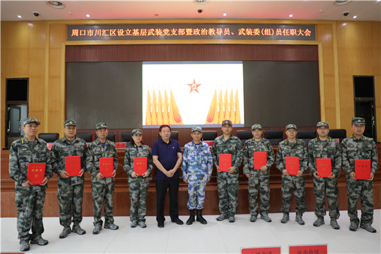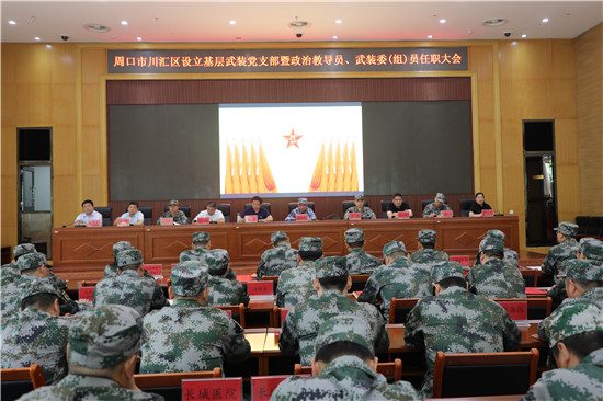黨管武裝建設(shè)國防,軍民攜手共筑長城。為健全武裝工作組織領(lǐng)導(dǎo)體系為推動國防動員和后備力量建設(shè)在基層末端落實(shí),7月16日上午,周口市川匯區(qū)召開基層武裝黨支部暨政治教導(dǎo)員、武裝委(組)員任職大會。周口軍分區(qū)司令員湯維政,區(qū)委書記、區(qū)人武部黨委第一書記李宗喜,周口軍分區(qū)政治工作處主任李揚(yáng),市委組織部副處級調(diào)研員宋陽,區(qū)人武部政委高新傳、部長陳繼芳及城鄉(xiāng)一體化示示范區(qū)、經(jīng)濟(jì)開發(fā)區(qū)、港口物流產(chǎn)業(yè)聚集區(qū)等有關(guān)負(fù)責(zé)同志參加了大會。會上設(shè)立了18個基層武裝黨支部,任命了15名基層武裝部政治教導(dǎo)員、20名村(社區(qū))武裝委(組)員任職命令,武裝部政治教導(dǎo)員、武裝預(yù)建黨支部書記和兼職武裝委(組)員代表先后作了履職承諾發(fā)言,湯維政等為新任命的人員頒發(fā)了任職證書。