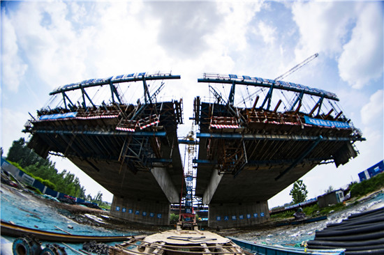 周口北環(huán)跨賈魯河大橋是我市在建重點(diǎn)工程,全長(zhǎng)904米,其中主橋總長(zhǎng)286米,共3跨,采用懸澆法施工。7月16日中午,記者在工地看到,經(jīng)過(guò)一年多的施工,工程完成80%左右,為了保障工期和質(zhì)量,工人們冒著酷暑,在跨河的兩列橋墩上,忙碌著澆鑄施工,隨著澆鑄橋體的延伸,預(yù)計(jì)年底橋體完成合攏。