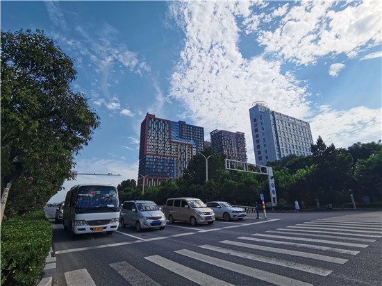 8月3日,周口市 中心城區(qū)晴空萬(wàn)里,藍(lán)天白云,市民駐足在每個(gè)地方都能看到美景。