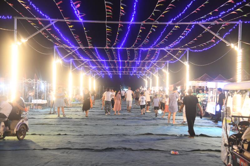 該夜市場地由商水縣水韻章華文商旅項目提供,占地近百畝,設(shè)有100多個攤位,經(jīng)營范圍包括吃喝玩樂娛、服裝百貨等,每天晚上6點多營業(yè),11點收攤,周末客流高峰時游客有3000多人,其中不少來自周口中心城區(qū)。