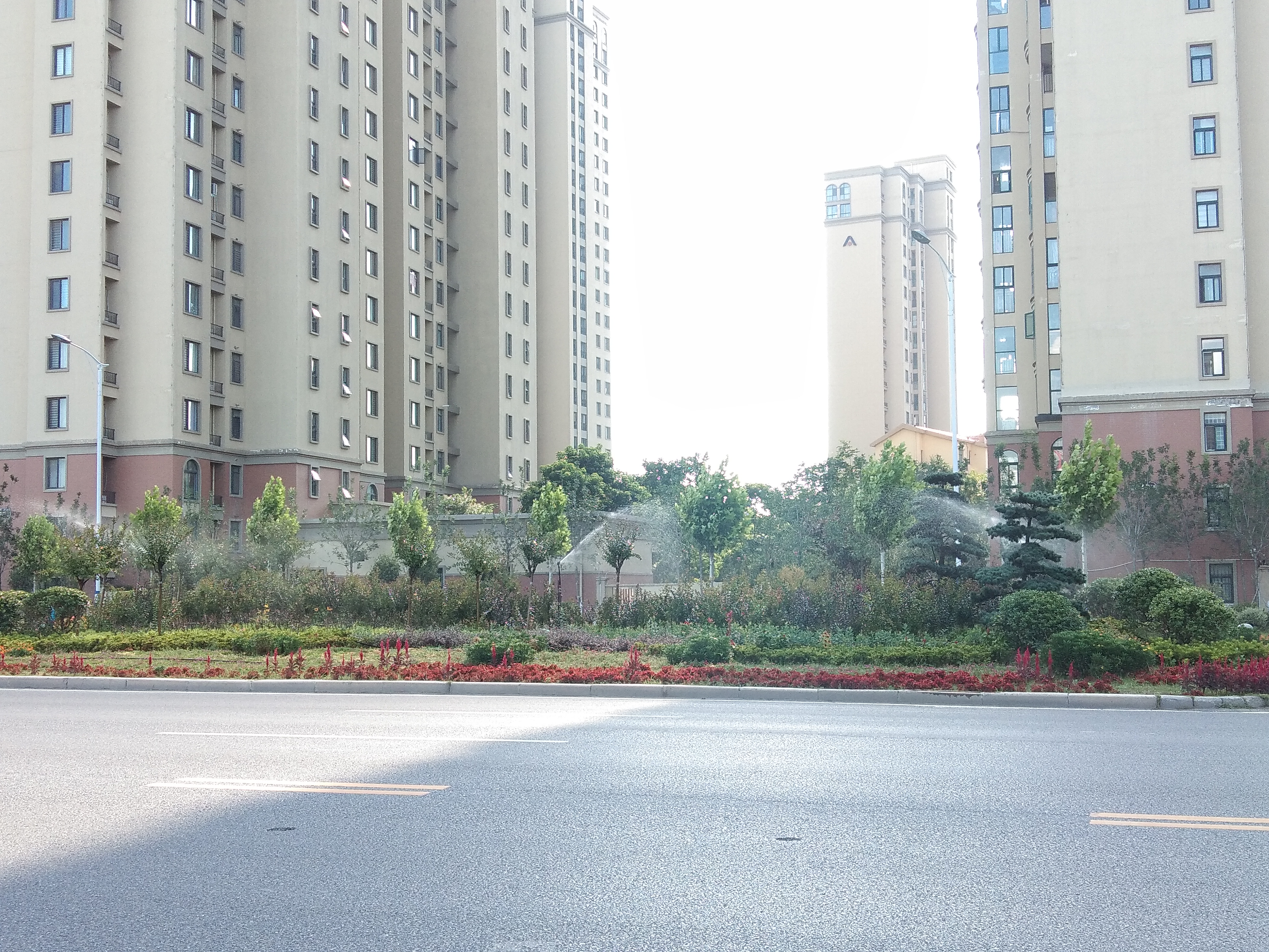 8月17日下午,高溫炙烤之下,讓人酷熱難耐,在周口大道橋北側(cè)的景觀帶內(nèi),工作人員打開自動(dòng)噴水系統(tǒng),給景觀帶內(nèi)花木降溫、解渴。周口日?qǐng)?bào)·新周口客戶端記者 張洪濤 攝