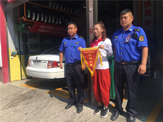 夏日的陽光透過清澈的天空照下來,街很凈,樹很綠。8月18日是開發(fā)區(qū)城管稽查大隊(duì)進(jìn)行“門前三包”流動紅旗和流動黑旗評選的日子。開發(fā)區(qū)城管稽查大隊(duì)工作人員根據(jù)綜合評比標(biāo)準(zhǔn),分別為“門前三包”工作突出的門店懸掛流動紅旗,為“門前三包”工作不力的門店懸掛黑旗。
