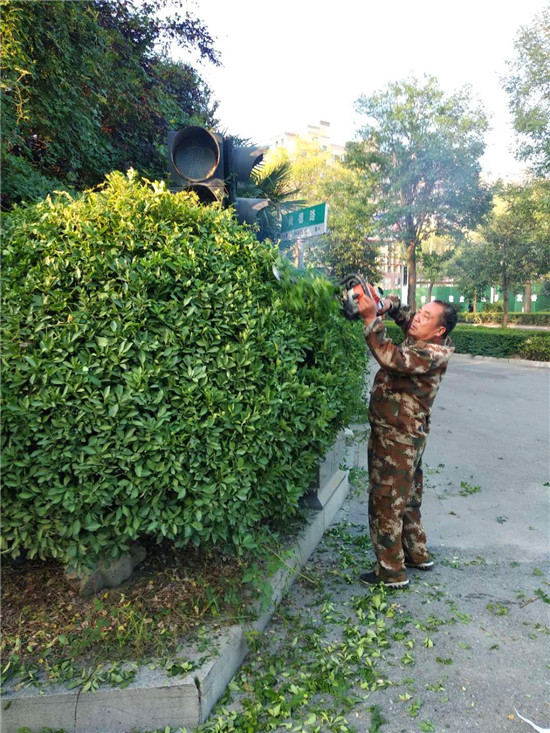 8月28日上午,沈丘縣城管局園林綠化工人克服高溫和蚊蟲叮咬,為尚德路上兩側(cè)綠化帶修枝整葉,清理雜草,精心打扮后,整條路更加整潔美麗。據(jù)悉,為全面提高該縣城市綠化管理水平,提升城市形象,連日來,園林綠化大隊以“城鎮(zhèn)環(huán)境大整治、城鎮(zhèn)面貌大提升”秋季集中攻堅行動為抓手,強勢推進園林綠化環(huán)境整治。