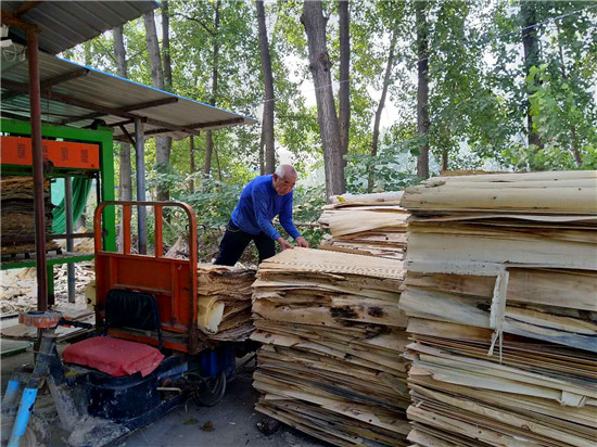 8月28日,商水縣練集鎮(zhèn)馬莊村的四紅木業(yè)有限公司板材加工車間內(nèi),機(jī)器轟鳴,工人忙著斷木、打圓、卷板,一張張板材被切割后,拉到曬板場晾曬。“有了這份收入,去年全家脫貧摘帽?!闭谲囬g里搬運(yùn)板材的馬莊村貧困戶王天林對記者說。