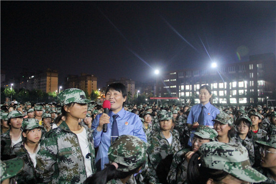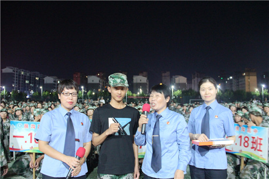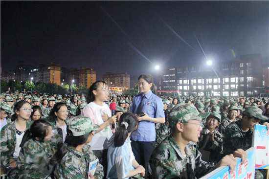 "你們正處于人生的花季,知識是養(yǎng)分,那么法律知識就好比是殺蟲劑,要學(xué)好,更要用好,要做到知法、守法、用法,在法治護(hù)航下遠(yuǎn)離校園欺凌,拒絕電信網(wǎng)絡(luò)詐騙,不義之財(cái)不可取,防范之心不可無……”。8月29日晚上7點(diǎn),黃昏謝去,暮色已經(jīng)模糊起來了,伴著淺淺的晚霞,扶溝縣檢察院檢委會專職委員郁玉琴帶領(lǐng)該院“女檢察官特別護(hù)未隊(duì)”的三名女檢察官到扶溝高中為正在接受軍訓(xùn)的1600余名高一新生們上了一堂別開生面的法治課。