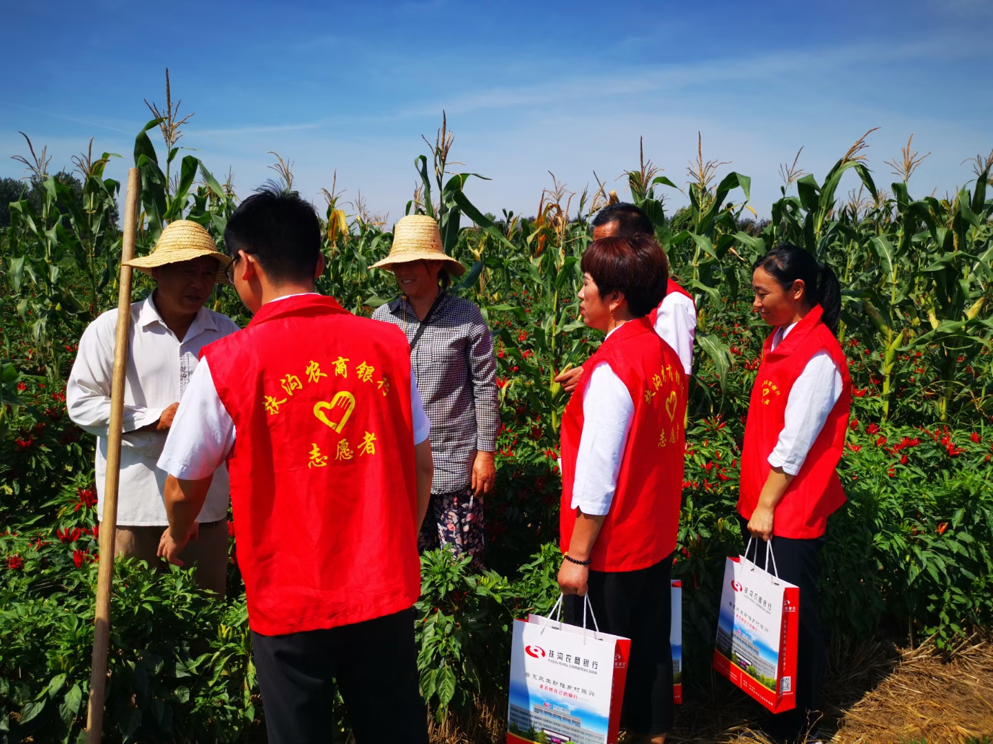 9月5日,扶溝農(nóng)商銀行大新支行“紅馬甲”們結(jié)合金融知識普及月深入田間地頭為老百姓送上金融服務(wù)和金融知識,深受村民的歡迎。